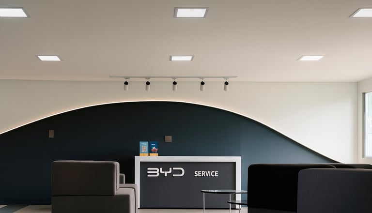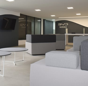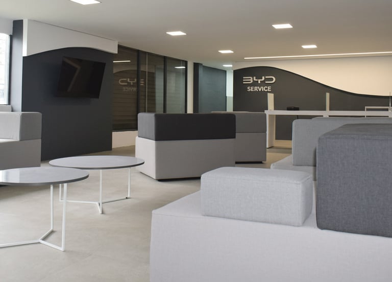 En Rionegro, Antioquia, asumimos el reto de transformar el concesionario BYD by Autolarte, logrando un espacio moderno, funcional y alineado con la identidad de esta gran marca.