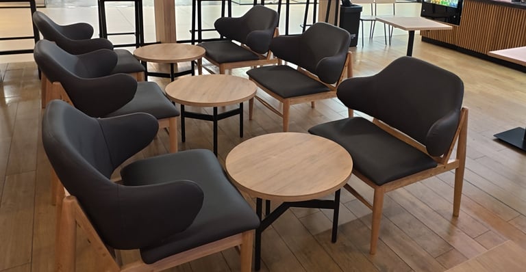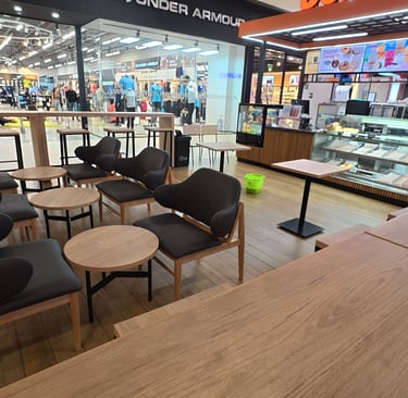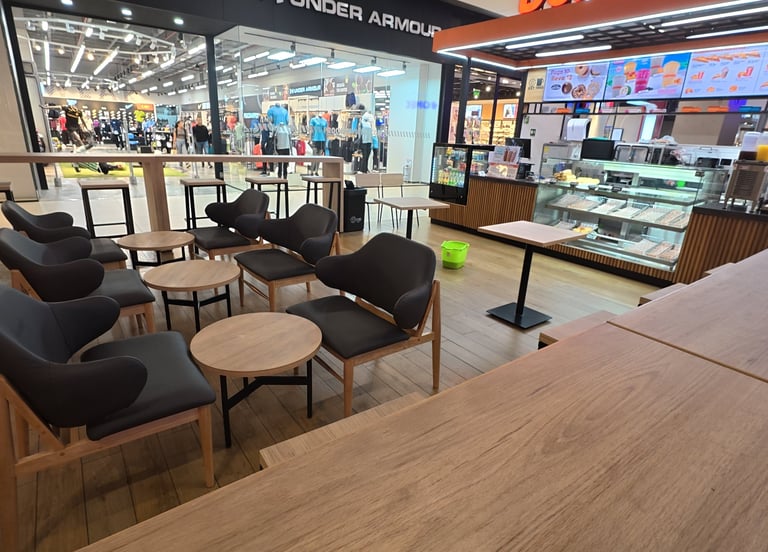 Este proyecto nace con el objetivo de brindar una experiencia única y coherente con la identidad de Dunkin' Donuts en el Centro Comercial Viva. Nuestro enfoque fue desarrollar mobiliario a la medida, con un balance entre funcionalidad, estética y durabilidad
